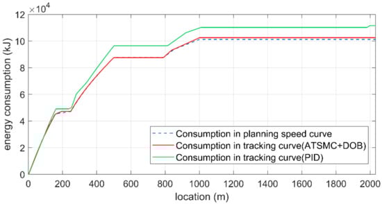In addition, as the focus of our attention, as shown in Figure 23, due to the precise tracking of the ATSMC algorithm, although its energy consumption is slightly higher than that of the reference curve, it still much better than the PID algorithm, which has bad energy saving due to a large tracking error. In conclusion, the ATSMC+DOB algorithm performs good tracking accuracy.