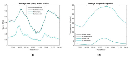 (a) Average heat pump load profile during winter and summer. (b) corresponding average temperature profiles.
