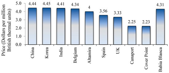 Figure 1 shows the worldwide LNG price as of June 2019. South Korea and China had the highest landed price of LNG in the world. The price received at the regasification plant is referred to as the landed price. Netback price is taken into consideration for the determination of these prices, which is based on the effective price for a seller and producer at a definite location.