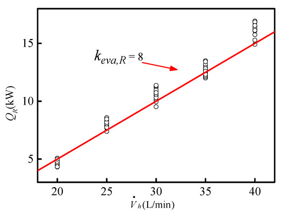 In the Equation (16), heva,R is the heat exchange coefficient computed from the heat exchange correlations without any modifications, so the heat transfer quantity QR computed with the experimental temperature data also needed to be modified. The equation can be established as follows:
