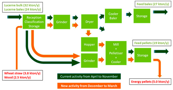 - Current situation: Only lucerne is processed into feed bales or feed pellets.