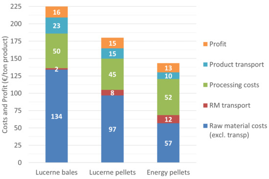 - Raw material transport costs have only a small contribution to the total costs in the case when the transport distance to the IBLC is relatively small. At larger distances, transport costs will of course have a more significant contribution.
