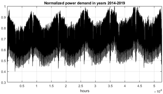Normalized power demand in the PPS in the investigated period of 2014–2019.