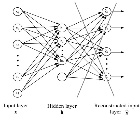 where x(k) represents the input signal vector, N is the size of this vector, and p is the number of observations. For better generalization capacity of the network, the additional regularization is applied, which takes into account minimization of weights, the sensitivity of hidden neurons to minor changes in input signal values, as well as specialization of neurons in particular areas of input data [22]. This is an important advantage of autoencoder over other deep learning solutions, for example, CNN [17], in which such regularization is not provided.
