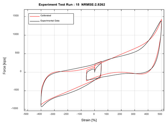 The model parameters in these three elements are calibrated from the full-scale bearing tests. The downhill simplex algorithm was used for the identification of the parameters by minimizing the normalized root-mean-squared error of the difference between the experimentally measured force and the numerical force determined numerically using OpenSees [12]. Table 2 summarizes the final calibrated parameters for the LRB model, and Figure 5 plots a comparison between the calibrated model and the experimental result [19].