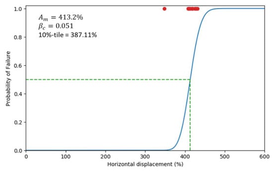 In this research, a fragility curve for the LRBs was estimated from the maximum likelihood method suggested by Shinozuka et al. [32]. The empirical fragility curve of the LRBs is assumed as a cumulative distribution function of the lognormal distribution, as shown in Equation (1),