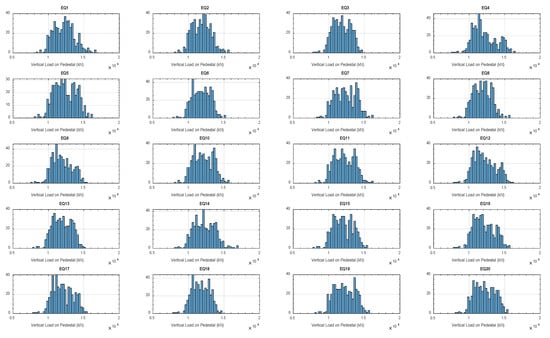 Vertical load distribution on the 486 isolators under 20 ground motions (PGA = 1.0 g).