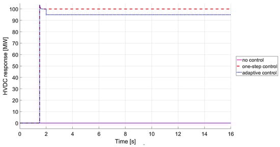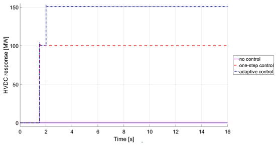 - Nonadaptive (One-step) HVDC response (HVDC output active power is constant and independent from the size of disturbance and the system inertia).