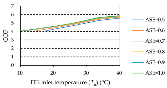 Coefficient of performance (COP) versus ITE inlet temperature (Tii).