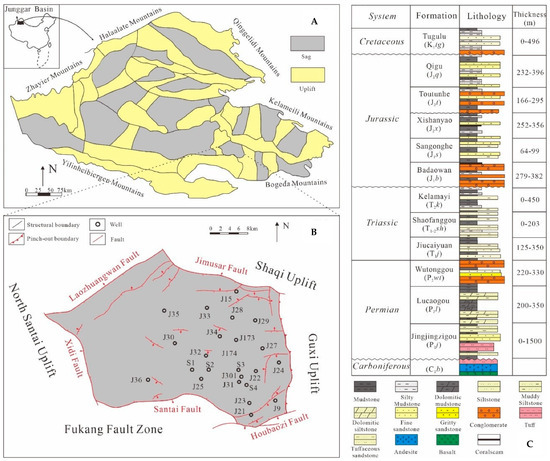 - Jiang, Y.Q.; Liu, Y.Q.; Zhao, Y.; Nan, Y.; Wang, R.; Zhou, P.; Yang, Y.J.; Kou, J.Y.; Zhou, N.C. Characteristics and origin of tuff-type tight oil in Jimusar sag, Junggar Basin, NW China. Pet. Explor. Dev. 2015, 42, 810–818. [Google Scholar] [CrossRef]