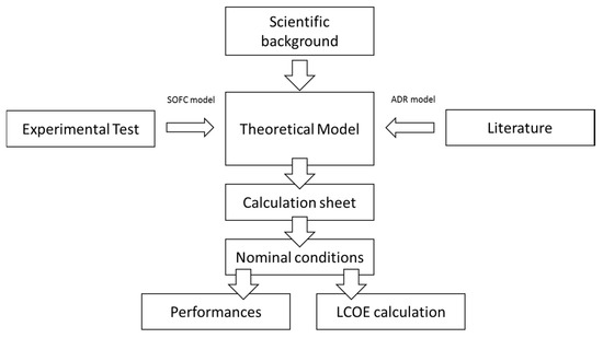The methodology followed includes three main phases. First, the experimental activity was performed to provide experimental data, subsequently implemented in the modeling phase; accordingly, Section 2.1 describes the experimental methodology in terms of short stack description, test rig and test campaign. Second, the ammonia-fueled SOFC system was modeled implementing the methods and system features (e.g., system lay-out, main components and model equations) detailed in Section 2.2. Finally, the simulation outcomes were implemented in the LCOE evaluation procedure, developed according to the methodology presented in Section 2.3. A schematic of the methodological workflow is reported in Figure 1.