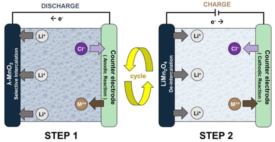 37. Xie, N.; Li, Y.; Lu, Y.; Gong, J.; Hu, X. Electrochemically Controlled Reversible Lithium Capture and Release Enabled by LiMn2O4 Nanorods. ChemElectroChem 2019, 1–8. [Google Scholar] [CrossRef]