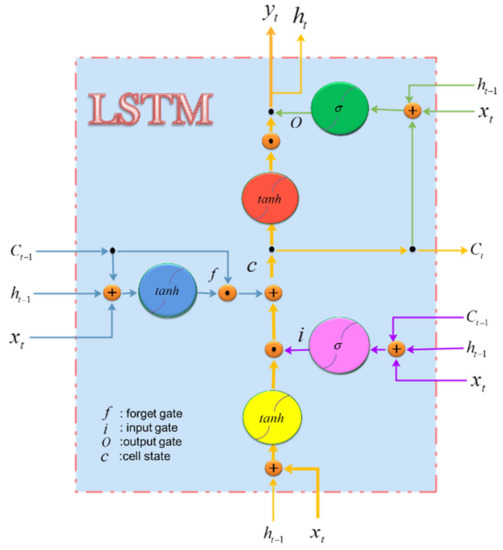 The LSTM, as a special RNN, has strong processing ability for time series data and effectively overcomes the defects of gradient disappearance and gradient explosion in RNNs in machine learning. Figure 1 shows the schematic structure of the LSTM.