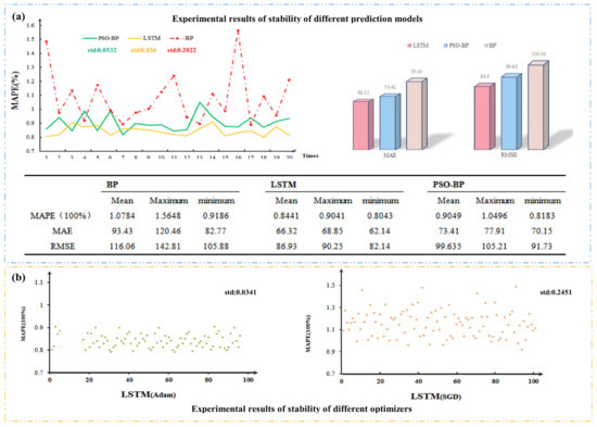 Experiment 1 aims to verify the influence of the noise reduction data set on the model and the performance of the VMD noise reduction method. In this way, the prediction accuracy of VMD-LSTM and other neural network models based on EMD and DA (i.e., EMD-BP, EMD-LSTM, DA-BP, and DA-LSTM) is compared. We performed three experiments on each model to assess the prediction accuracy of each model, and the specific prediction results based on NSW spring dataset are shown in Table 6.