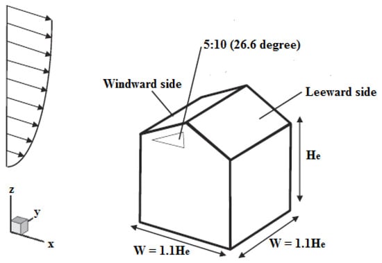 - Ozmen, Y.; Baydar, E.; Van Beeck, J. Wind flow over the low-rise building models with gabled roofs having different pitch angles. Build. Environ. 2016, 95, 63–74. [Google Scholar] [CrossRef]