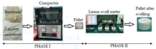 The swelling test of each pellet in the selected fluid was conceived and conducted as a complete cycle of two phases that lasted for 24.5 h cumulatively. As shown in Figure 4, each cycle consisted of:
