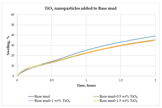 Swelling in base mud and in muds with added TiO2 nanoparticles within 2 h.