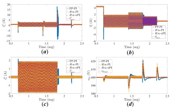 The PI controller parameters of Figure 2 were obtained using two different approaches: (1) the traditional Pole-Placement method (PP-PI) and (2) the synthesis approach as proposed in [41] to obtain robust PI controllers [19]. From the latter approach, two different sets of the PI controller parameters were obtained: one of them considering only the TLSC SAPF nominal model (-PI) and the other one accounting for the converter model parameters uncertainty (-uPI).