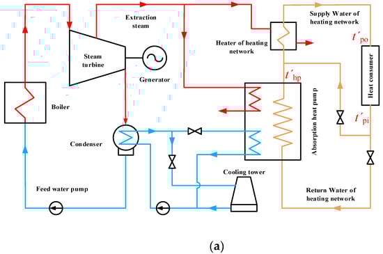 - Wang, J.; Xia, K.; Chen, W.; Liu, M.; Chong, D.; Liu, J.; Yan, J. Research on Heat Recovery System of Turbine Exhaust Steam Using Absorption Heat Pump for Heating Supply Based on Heating Load Characteristics. Energy Procedia 2015, 75, 1502–1507. [Google Scholar] [CrossRef]