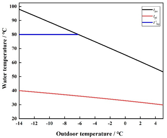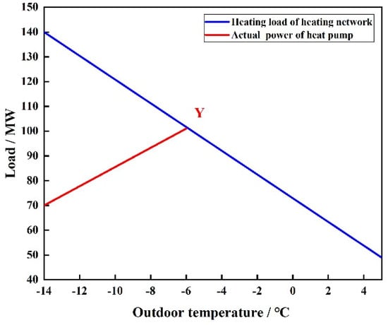 - Throughout the heating period, with the change in the outdoor temperature, changes in the heating load of the heating network will affect the actual output power of the heat pump with a determined design power. As the outdoor temperature increases, the actual output power of the heat pump first increases and then decreases, reaching the maximum value at a certain outdoor temperature in the middle.