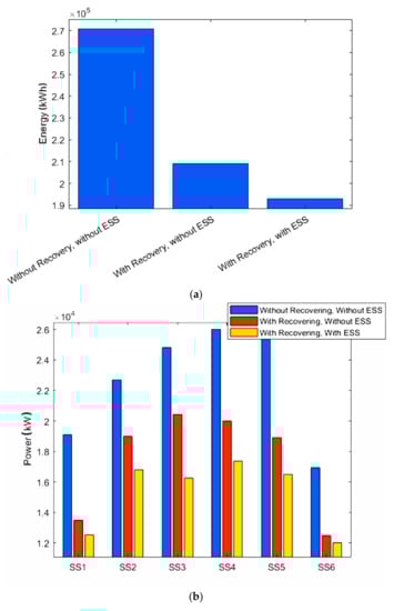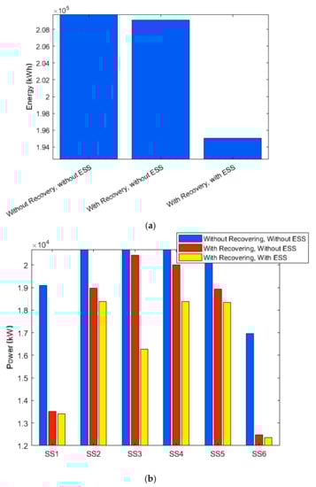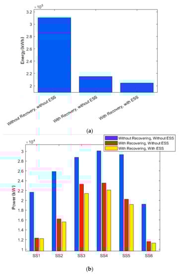 - With the possibility of recovering the braking energy and with ESS installed along the line.