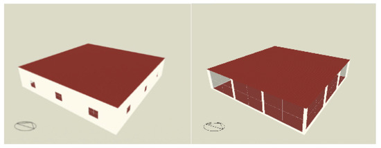 Window to wall ratio examples. WWR = 10 on the (left) and WWR = 100 on the (right).