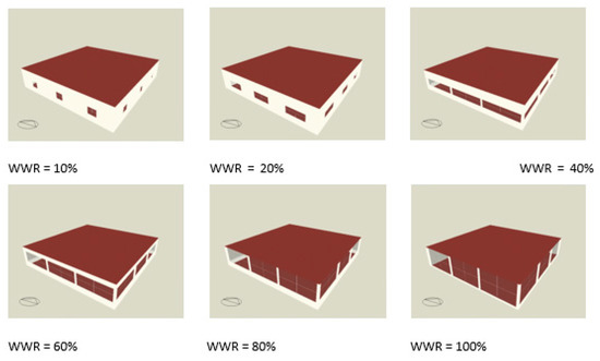WWR = 0 refers to a wall without the window, and WWR = 100 to a wall, which has total glass façade. A visual expression of this can be seen in Figure 3 below.