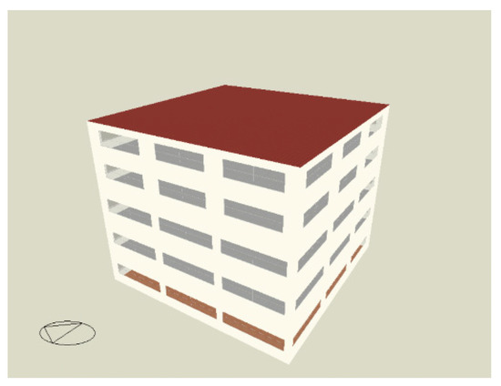 For validating the model, one new building base case was designed with the same constructional parameters as the previous simulations. Annual solar heat gains were simulated with the simulation program EnergyPlus and compared to the value, that was calculated using the developed model. Next, the fifth building shape (Figure 11) was created in Design Builder, and it is expressed below: