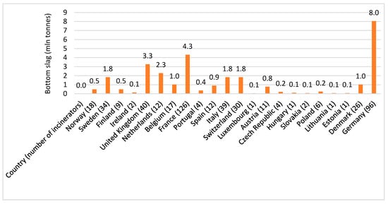The number of incinerator plants and amount of bottom ash produced in Europe in 2017 [1].