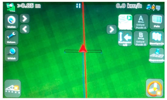 The development of agricultural mechanization meant that the work of a modern operator is less and less dependent on the direct operation of an agricultural machine [] (pp. 138–139). The operator’s main task is usually to manage processes by efficiently operating automated and computerized signaling and control devices [] (pp. 12–15). Monitoring the work of machines with the use of appropriate signaling and control devices cooperating with those machines is one of the opportunities of using modern, precision agriculture systems. These systems not only enable the positioning of a tractor or agricultural machine in the field, but, above all, support the operator’s work by accurately guiding the vehicle along a designated path [] (pp. 120–122). However, to keep the vehicle in the right course in the field, the operator must acquire the skills to properly read the navigation panel indications and to drive the vehicle according to those indications. From the navigation panel, the operator can read the current vehicle position and direction of travel in relation to the entire recorded area. A practical difficulty that can be encountered by tractor operators cooperating with navigation systems on parallel strips is the problem of maintaining a straight drive line, without deviations greater than 20–30 cm, especially when driving on a field with uneven borders or situated on a hill [] (pp. 120–122). The pace of acquiring skills for faultless driving in a designated track is different for each operator. Observation of the field from the tractor cabin does not allow for reliable assessment of test drives (performed during the operator training), and the small size of the navigation screen prevents accurate analysis of the entire trajectory. For this reason, it is difficult to determine when the operator will acquire relevant skills. On the other hand, objective determination of this moment also allows for deciding when the training may be interrupted. Early termination of the training (once it is certain that the operator already has the required skills) can lead to significant savings in time and material resources (e.g., fuel needed to perform training drives).