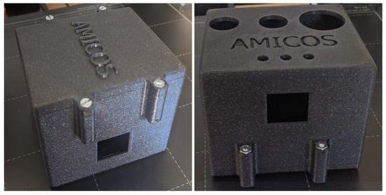 As a part of rapid manufacturing, the most widespread and accessible method is 3D printing. Using a Prusa Mk3S printer a custom case for the onboard computer was created. A hand-sized 70 × 75 × 67 mm case with holes for the gas sensors and control diodes protects the measurement unit from the harsh mining environment and simultaneously allows evaluation of ventilation condition correspondingly. The created case is presented in Figure 5. Polylactic acid (PLA) was chosen as a construction material. Its mechanical parameters are sufficient for use as a case in the mine area. Moreover, PLA is a biodegradable plastic, and its physical properties are excellent for a thermoplastic forming process [,].