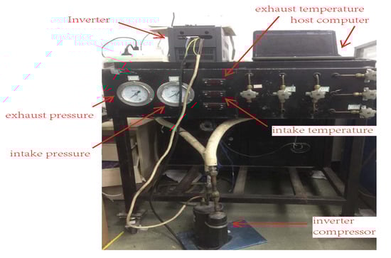 The nominal parameters of inverter compressor are presented in Table 3. In order to validate effectiveness of the proposed scheme, experiments are implemented on inverter compressor platform presented in Figure 19, where digital signal processor (DSP) TMS320F28069 (TX) and IGBT module 7MBP50VFN060-50 are selected as a micro-processor and power device, respectively, sampling and pulse width modulation (PWM) switching frequency are selected as 10 KHz. Moreover, the current, voltage, and speed base value are selected as , 310 and 3000 (considering flux weakening range), respectively.