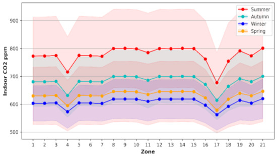 Appendix A.2. CO2 Concentrations per Zone for Four Months