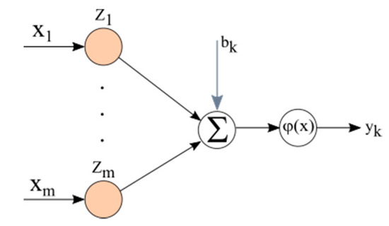 A common activation function is the rectified linear unit (ReLU), which activates the perceptrons if the input vector is greater than zero [55], as shown in Equation (2).