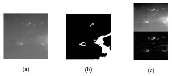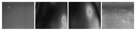 To reduce noise and increase the neural network performance in terms of precision, accuracy and speed of execution, different types of pre-processing were applied to the false color images (C) obtained from the thermographic analysis. All images individually acquired by the operator or extracted as frames from videos were subjected to a normalization phase of the light intensity value of pixels and homogenization of the number of pixels. The normalization was performed by showing the pixel light intensity value on the 1/255 scale. The homogenization of images, on the other hand, was achieved by sending a defined number of pixels of the image to the neural network, according to the proportions between its dimensions (width and length). Other techniques for varying the light intensity of the pixels carried out to highlight the geometric shape of the local overheating shown in the image and in Figure 10 are as follows: