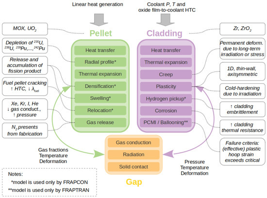 - FRAPI [18] is the fuel rod analysis program interface designed for the loose coupling of the fuel rod analysis codes FRAPCON and FRAPTRAN [17] with other reactor core codes. The interface supports most of the original code options beside the two-dimensional finite element analysis of fuel rod cladding. The diagram of the phenomena simulated by the codes is presented in Figure 1.