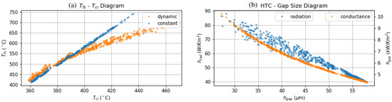 The temperature jump distance, also known as the gas extrapolation length, accounts for the temperature discontinuity near the fuel and cladding walls caused by the accommodation effect. The accommodation effect appears to be important if the gap width is small compared with the gas mean free path and gas molecules travel back and forth between walls rarely colliding with each other. For example, at 20 MPa gas pressure and 900 K gas temperature the jump distance for helium is about 10 m, for xenon about 1 m. According to the Maxwell gas–surface interaction model, gas molecules undergo the diffusive reflection associated with the complete thermal accommodation to a wall surface temperature and the specular reflection that does not change the particle’s energy. The specular reflection and the inability of gas molecules leaving a surface to fully exchange their energy with neighboring gas molecules results in a steep temperature gradient near the fuel and cladding surfaces which is computationally adjusted by in Equation (4). The detailed gas–surface interaction model, including the fraction of specular reflection events, for different gas and wall materials is the subject of many experimental measurements and theoretical studies [22].