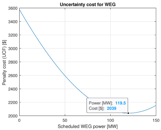 Uncertainty cost for WEG. The minimum is the same as Reference [7].