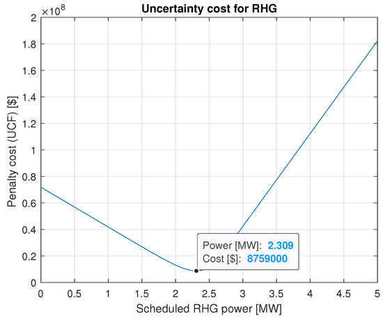 Uncertainty cost for RHG. The minimum is the same as Reference [8].