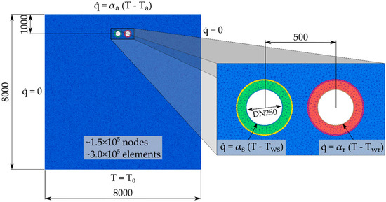 - Danielewicz, J.; Śniechowska, B.; Sayegh, M.A.; Fidorów, N.; Jouhara, H. Three-dimensional numerical model of heat losses from district heating network pre-insulated pipes buried in the ground. Energy 2016, 108, 172–184. [Google Scholar] [CrossRef]