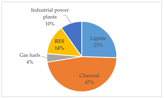 In 2019, electricity production in Poland amounted to 181.6 TWh. Renewable energy sources (RES) produced 22.6 TWh of electricity, which accounted for 14% of the total electricity production. The structure of energy production in Poland by energy carriers in 2019 is shown in Figure 1.