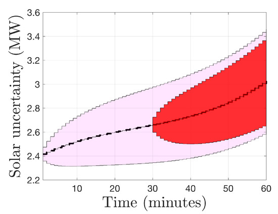A receding horizon implementation framework is further put forward to compute the optimal control trajectory. We set a moving prediction window from to with all the scenarios in accounted for. At each time , the decision variables corresponding to scenario include