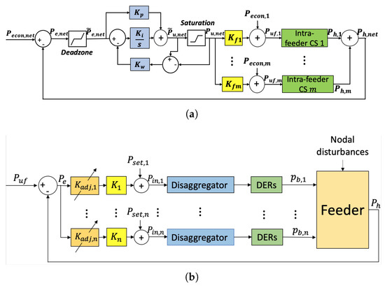 The proposed hierarchical scheme converts system-wide economic market signals into power reference signals for the DSO’s feeders, which achieve their reference by managing devices internal to each feeder. Thus, each layer is defined by key signals that are described next.
