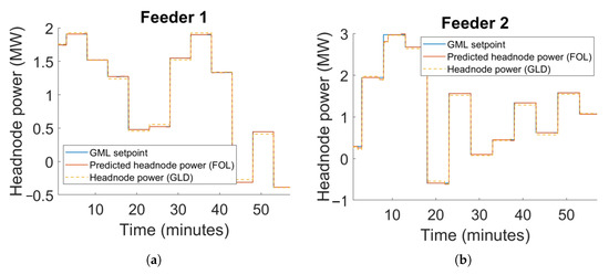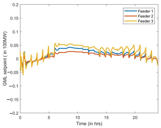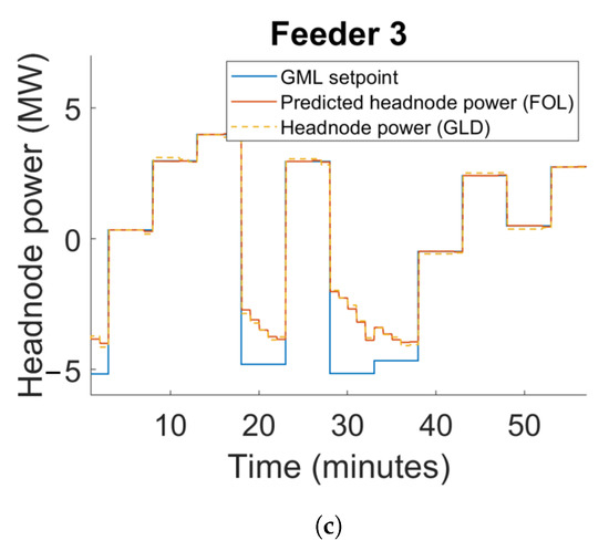 GML setpoint tracking performance for the fully modelled feeders in the FOL. (a) Feeder 1. (b) Feeder 2. (c) Feeder 3.