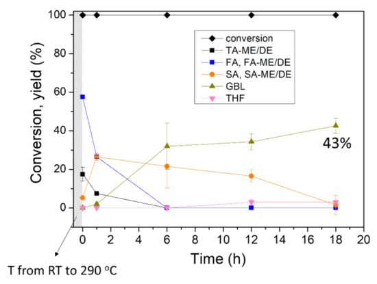 - Shao, Z.; Li, C.; Di, X.; Xiao, Z.; Liang, C. Aqueous-Phase Hydrogenation of Succinic Acid to γ-Butyrolactone and Tetrahydrofuran over Pd/C, Re/C, and Pd–Re/C Catalysts. Ind. Eng. Chem. Res. 2014, 53, 9638–9645. [Google Scholar] [CrossRef]