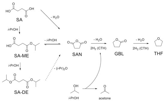 - Le, S.D.; Nishimura, S. Highly Selective Synthesis of 1,4-Butanediol via Hydrogenation of Succinic Acid with Supported Cu–Pd Alloy Nanoparticles. ACS Sustain. Chem. Eng. 2019, 7, 18483–18492. [Google Scholar] [CrossRef]