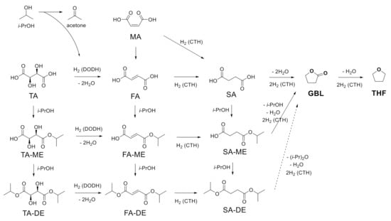Chicago/Turabian StyleJang, Jun Hee, and Mahdi M. Abu-Omar. 2020. "Deoxydehydration and Catalytic Transfer Hydrogenation: New Strategy to Valorize Tartaric Acid and Succinic Acid to γ-Butyrolactone and Tetrahydrofuran" Energies 13, no. 23: 6402. https://doi.org/10.3390/en13236402