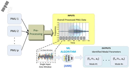 However, it seems that, as of today, the major good point of measurement-based methods is that they are inherently data-driven. In effect, some works have already explored the possibility to use these techniques in the context of a wider and more complex machine learning framework based on the use of artificial neural networks (ANNs), such as [26,27,28,29,30], either for LFO identification or EDSs characterization. In the above mentioned papers, the measurement-based estimation techniques are combined with ANN-based methods in order to identify the LFO mode parameters in real-time, or to extract other useful power grid information (like the system operating conditions or the generator coherency). In other applications, the data extracted from the ANN are also used to control and to damp the LFO phenomena [28,31]. It must be remarked that a key point inside the listed approaches is the need to operate a dimensionality reduction of the huge amount of data coming from PMUs. This is due to the fact that the use of machine learning techniques for modal analysis requires an offline training of the ANNs that depends, in terms of time required, on the size of the network and the size of the input data. Plenty of dimensionality reduction techniques are present in literature that can be suitable for this scope. Some very popular are the principal component analysis (PCA) [32], the independent component analysis (ICA), the dynamic mode decomposition (DMD) [33,34], and their further extensions and modifications.