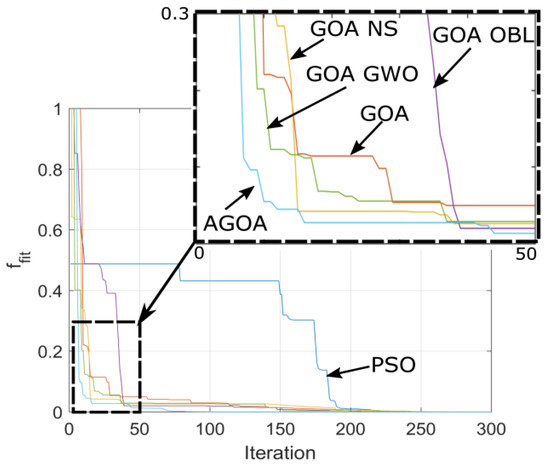 In this section, a simulation analysis of GOA algorithm performance is presented. Moreover, a comparative study between GOA and modified GOA (NS, AGOA, GWO, and OBL) is carried out. The optimization process has been carried out with the following assumptions: