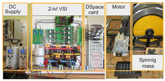 The applied GOA algorithm has been experimentally verified. Switching angles calculated by the GOA algorithm were implemented into the laboratory stand (Figure 11) developed according to Figure 1. Parameters of the induction motor applied in the laboratory stand are presented in Table 1. The inverter control by switching angles input was provided by DSpace card 1104. Switching angles were applied as the look-up table for off-line control. Verification was conducted for two operating points with the same fundamental frequency ff = 50 Hz, and different M1 = 0.9 and 1.0, respectively.